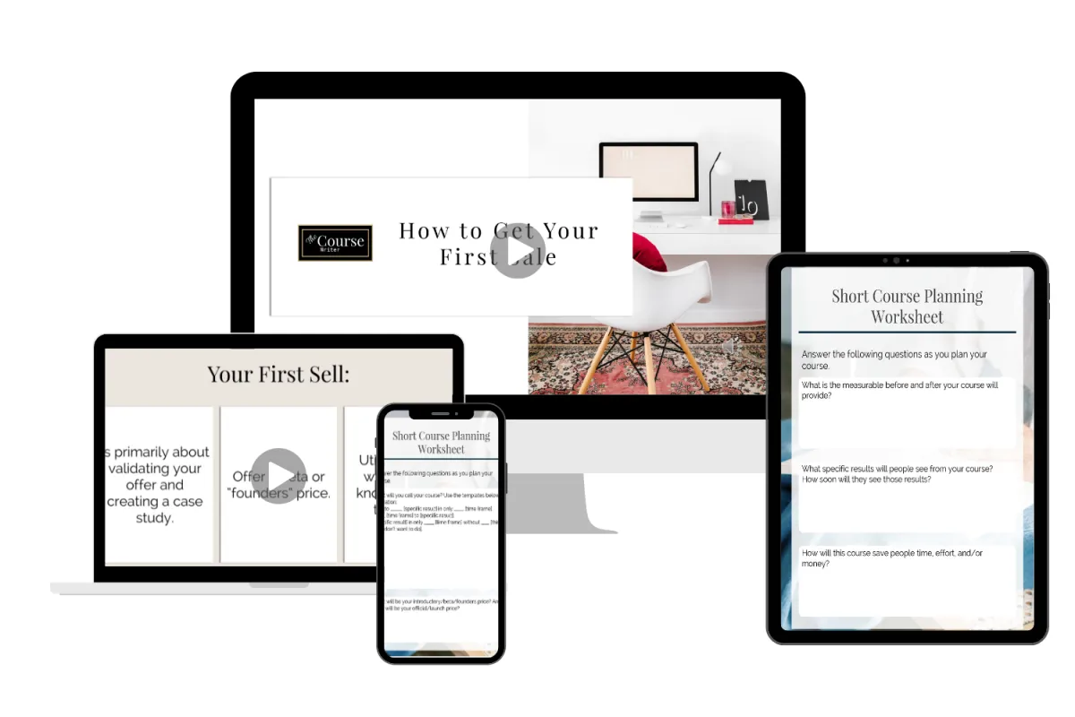 Step-by-step video tutorials to help you focus your idea, outline your course, create the content, and get your first sale.